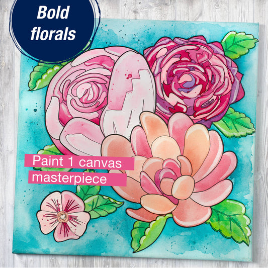 Watercolor Paint by Number Bold Floral Wall Decor Craft