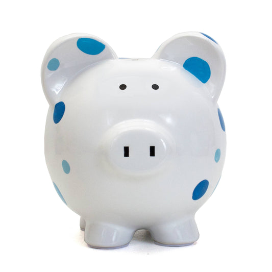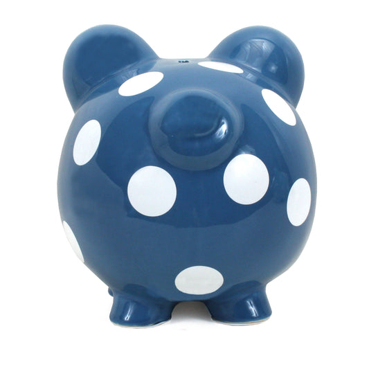 Large Dark Blue Piggy Bank with White Dot
