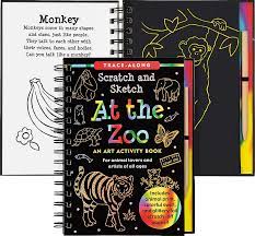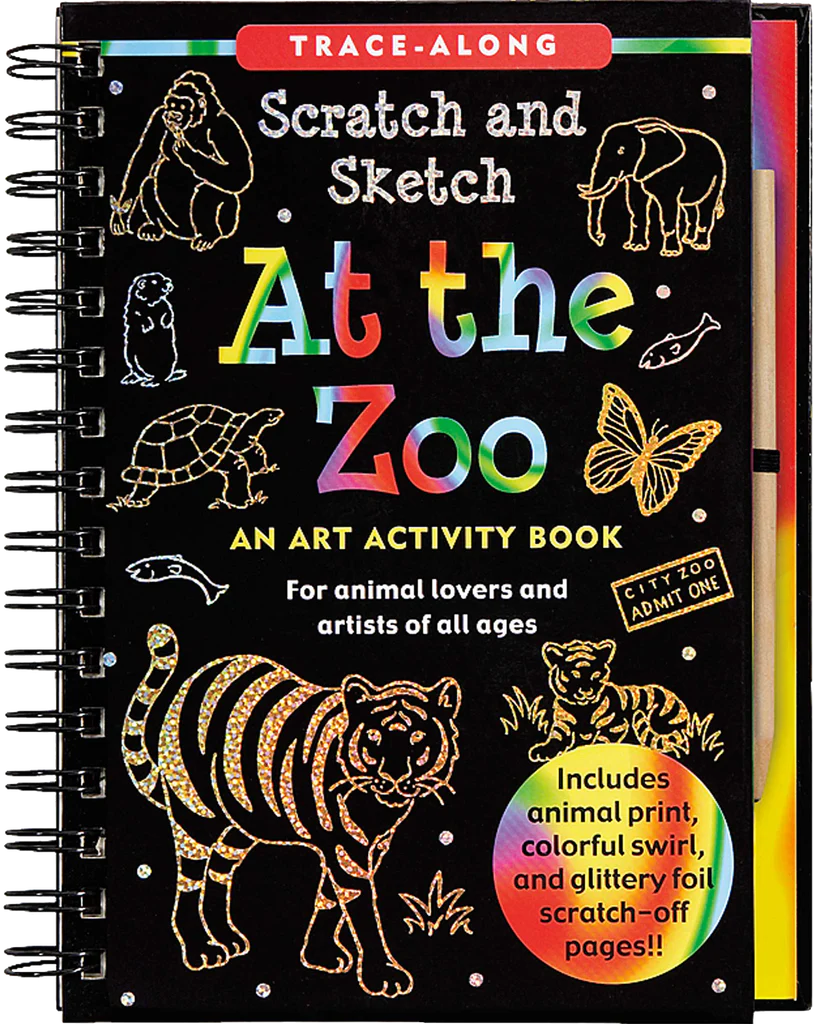 This is a Trace-Along Scratch and Sketch! White outlines on black scratch-off pages create a fun way for younger children (5 and up) to trace favorite animals, revealing patterns, swirls, and holographic colors.