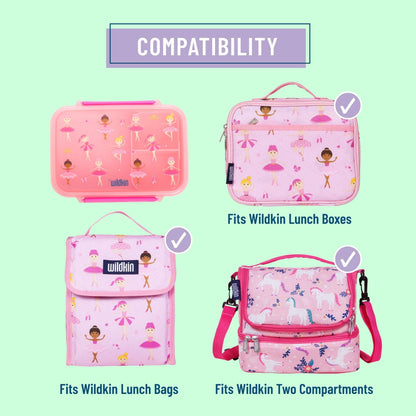 Compatible with Wildkin's Lunch Box, Lunch Bag, Eco Lunch Bag, Clip-In and Two Compartment (top or bottom compartment) Lunch Bags