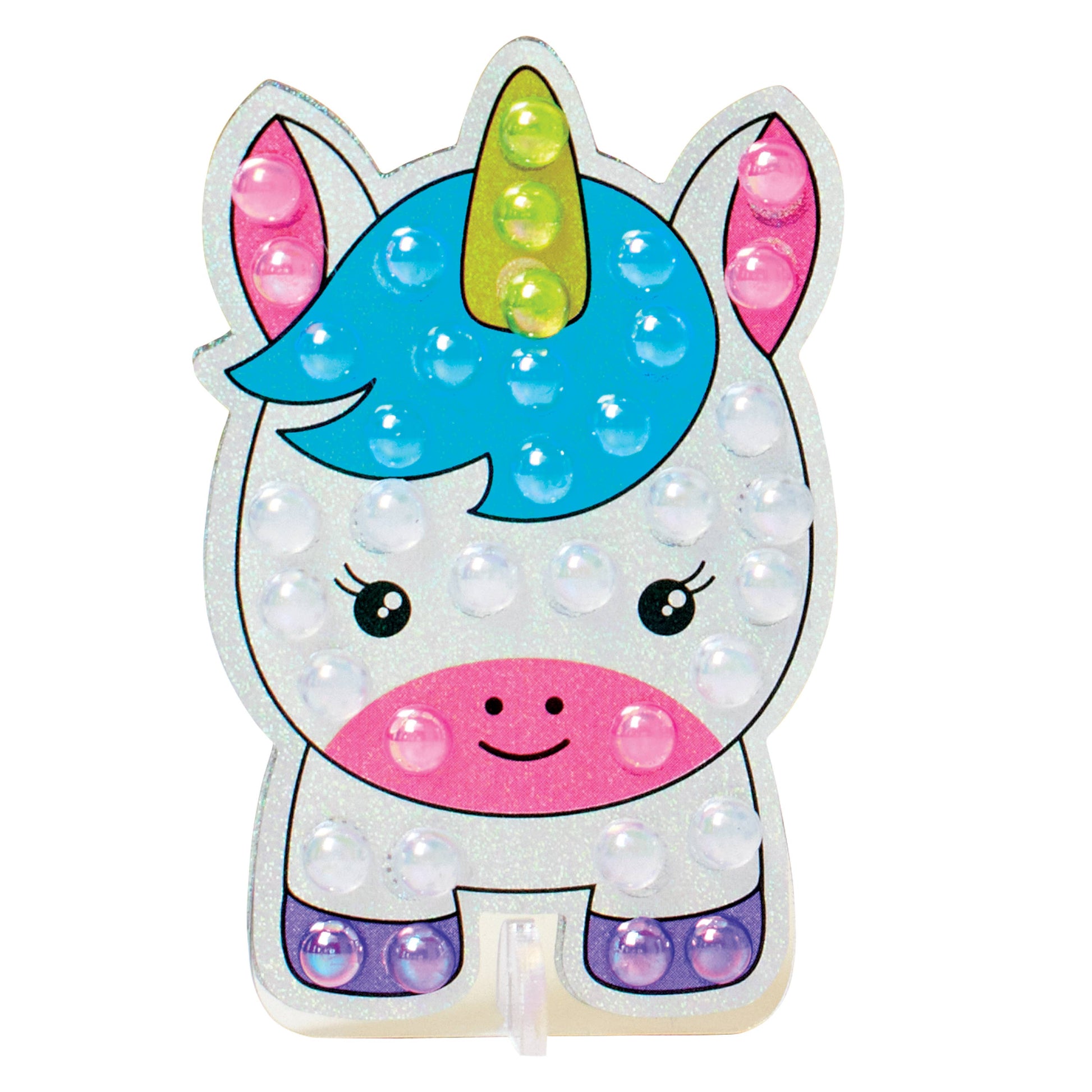 Create 5 Pearl Pals that are fun to decorate, fun to collect and fun to play with. Start with a sturdy acetate base, then layer on the pearlized Bubble Gems following the pre-printed foil pattern. Decorate the Disco Party backdrop with a dimensional disco ball, foil sticker and Bubble Gems. Pre-printed sticky dots and stylist makes decorating easy and fun. Play and pretend Pearl Pals are approximately 2.5" h. Ages 6+