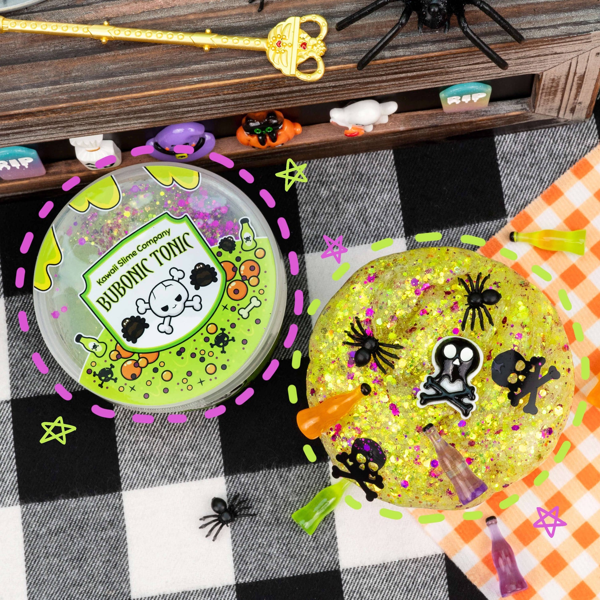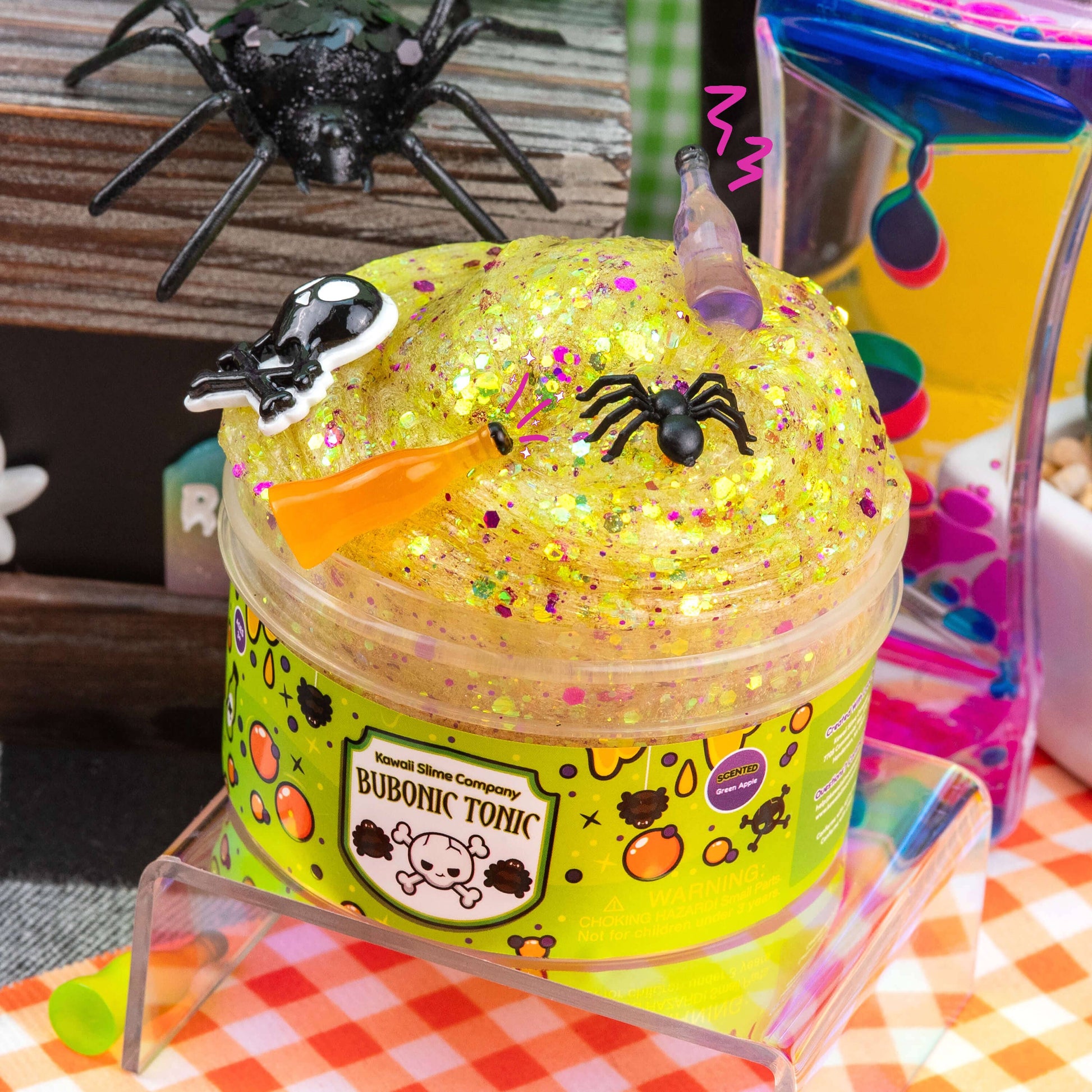 Bubble, bubble, toil and trouble! Make your own potion with this Bubonic Tonic Clear Slime, a bubbly, toxic green slime scented like the juiciest of green apples. (Yum!) Who knew science could be so slimey? Perfect for getting your hands sticky and your mind thinking! Gooey fun guaranteed!