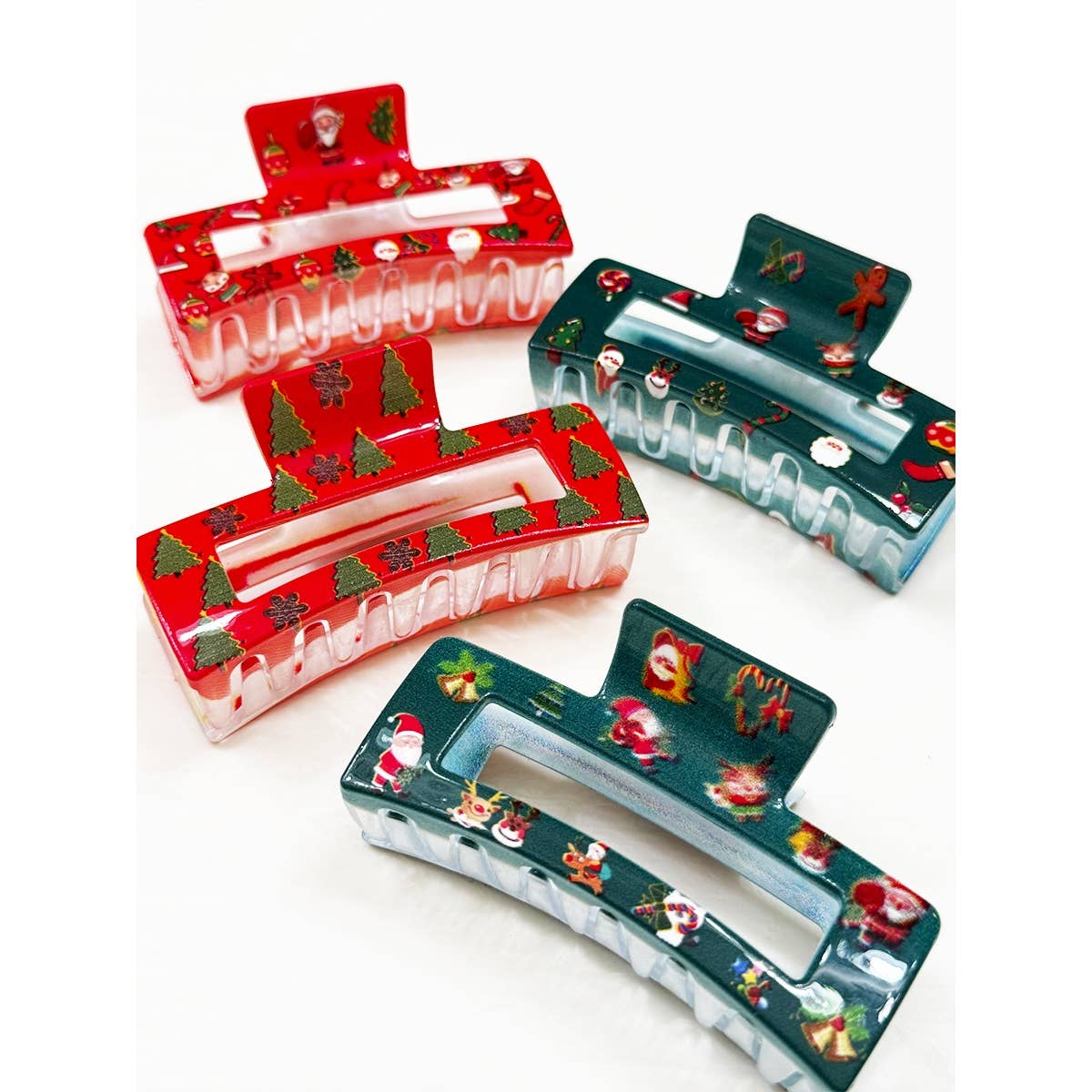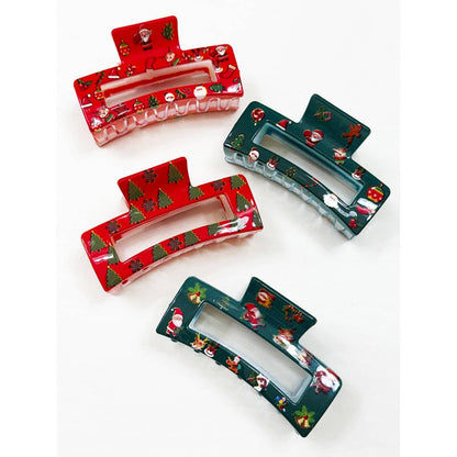Christmas Design Cut Out Rectangle Hair Claw Clip