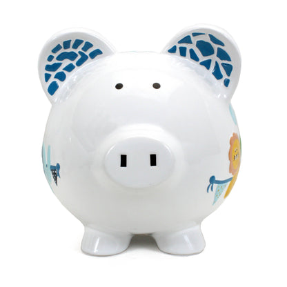 All of our banks are made from only the highest quality ceramic, known as dolomite, for increased durability. They feature a base that is deep glazed, insuring that this essential color doesn't wear off with repeated handling. To finish things off, we add a shiny finishing that keeps the colors of all of the underlying components locked in place, meaning that you never have to worry about compromising the quality of the bank with repeated use.