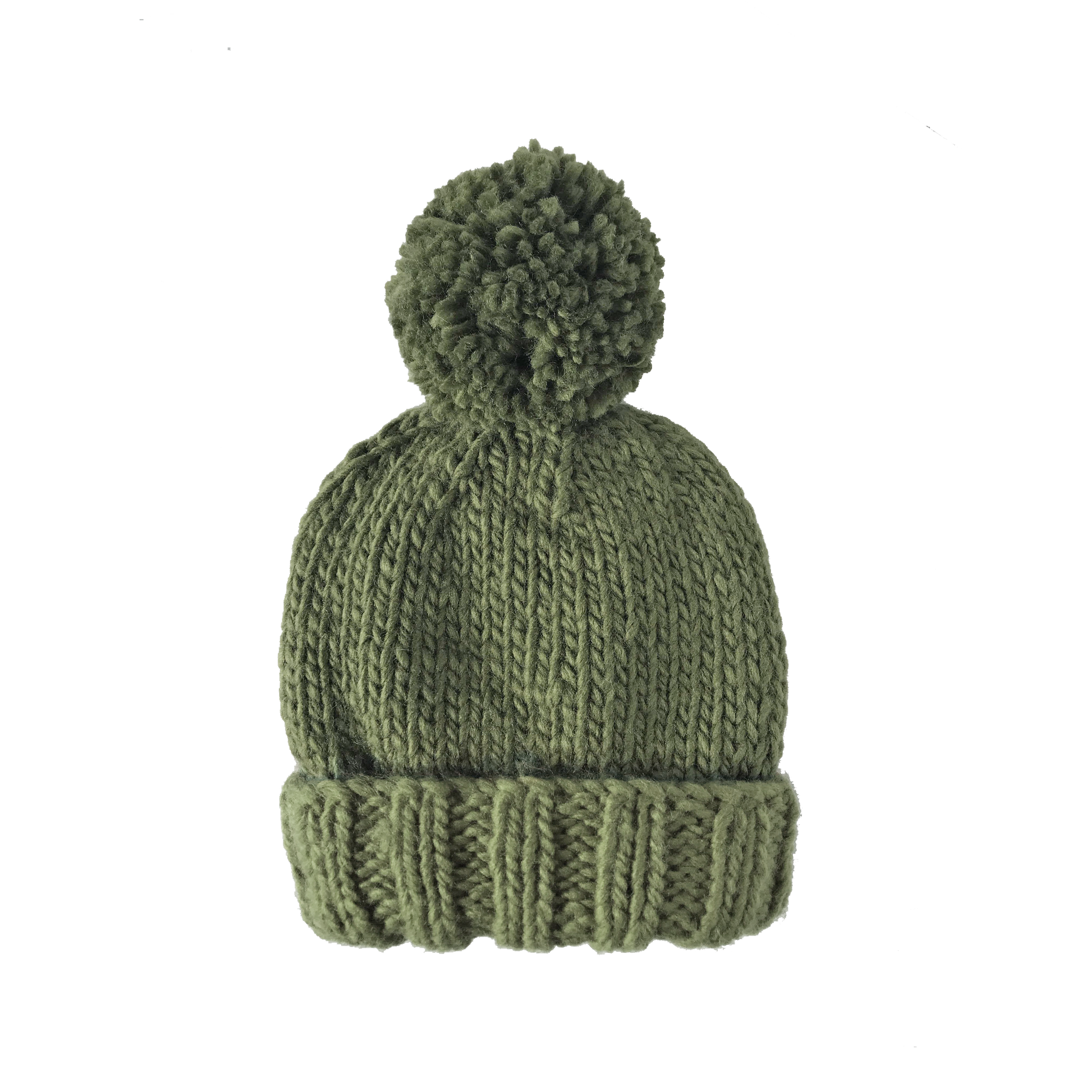 Classic Pom Hat, Moss Kids Baby Fall Christmas Holiday Wood