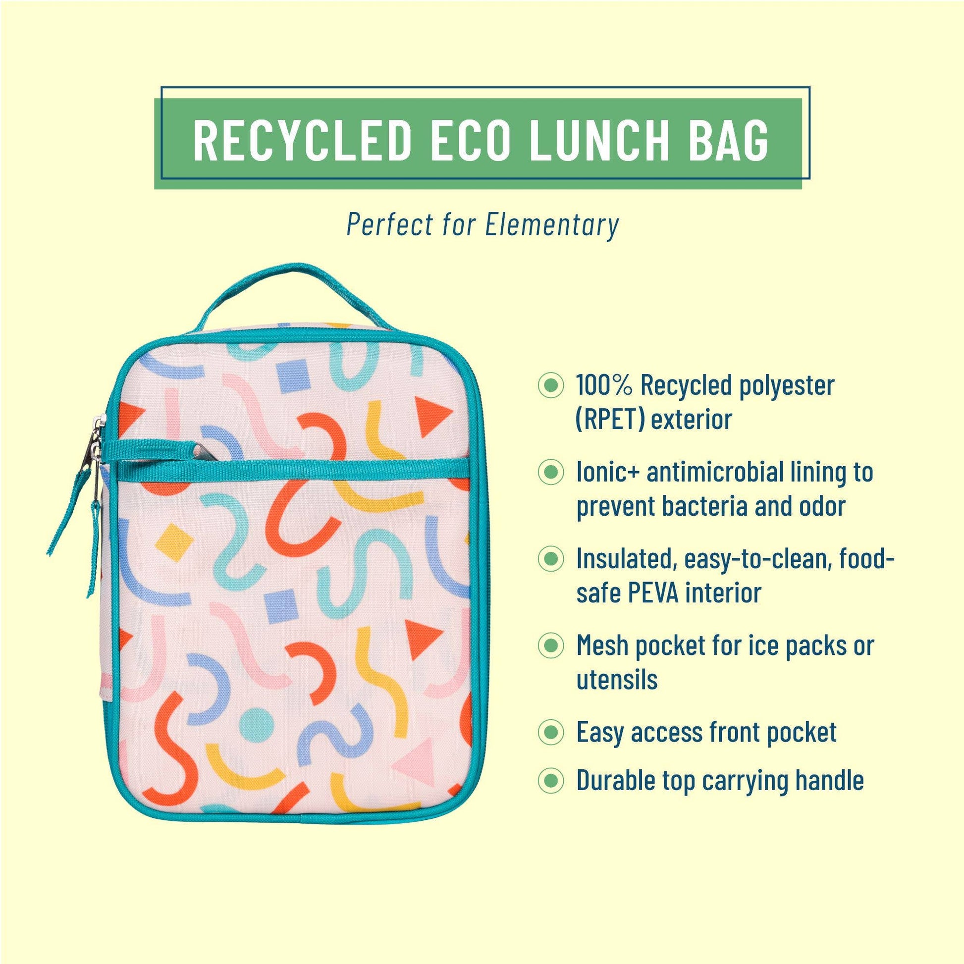 At Wildkin, we know that details matter to you and your child, and we made sure that our Wildkin Kids Eco Lunch Bag for Boys and Girls was designed with that in mind. The double-zipper closure provides little hands with easy access to their favorite items, while the durable top handle is perfect for hanging in a cubby before and after lunch. A recycled polyester exterior is a sustainable and durable choice, and an antimicrobial Ionic+ lining ensures odor free use. The insulated lunch box will help keep lunch fresh, and the food-safe PEVA interior is easy to clean. Features vibrant and playful designs that coordinate with other items in the Eco Collection.