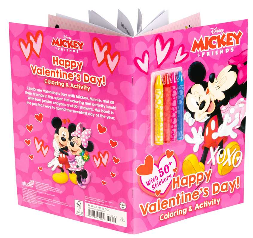 Color your way through the sweetest holiday of all time with Mickey, Minnie, Donald, Daisy, and Goofy as they explore, play games, and so much more. With 48 pages of adorable scenes to color, creative Valentine’s Day themed activities (mazes, matching, and more!), 50+ stickers, and four crayons to use, this book is a perfect Valentine’s Day gift for kids who love tons of coloring fun.