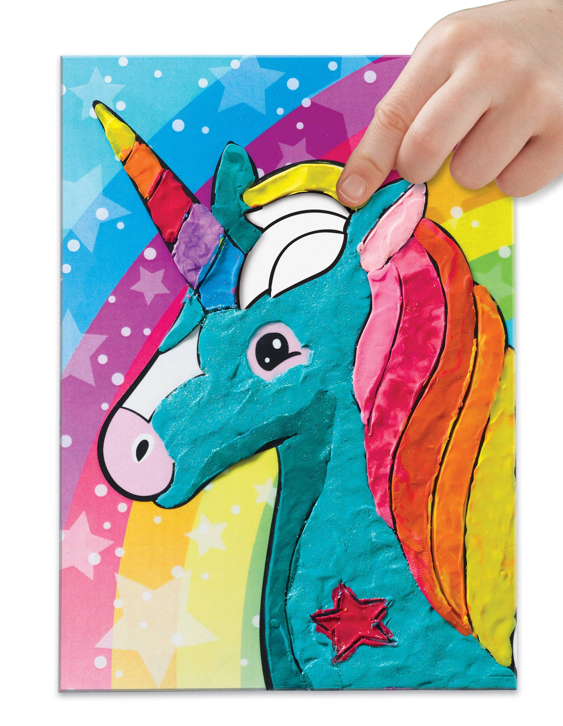 Blend, shape, and add texture to design boards with clay to create colorful and dimensional animals. 25+ kids' clay project includes 12 vibrant sticks of easy-to-mold clay, 4 fun color-in unicorn designs, special rubber tip blending tools, 3 double-sided clay tools, and easel backs to display your work.