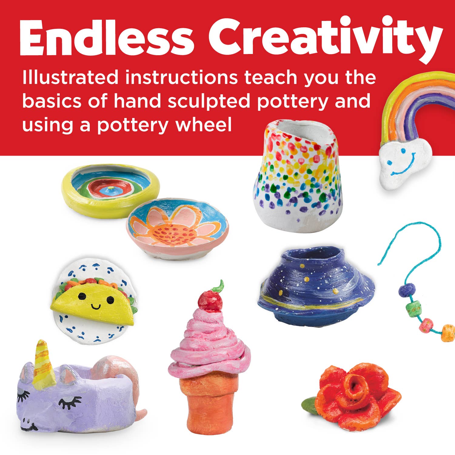 This complete craft activity comes with instructions on how to make pinch pots, coil handles, hand-sculpted clay, and pottery you create on the wheel! Strong pottery wheel for kids!