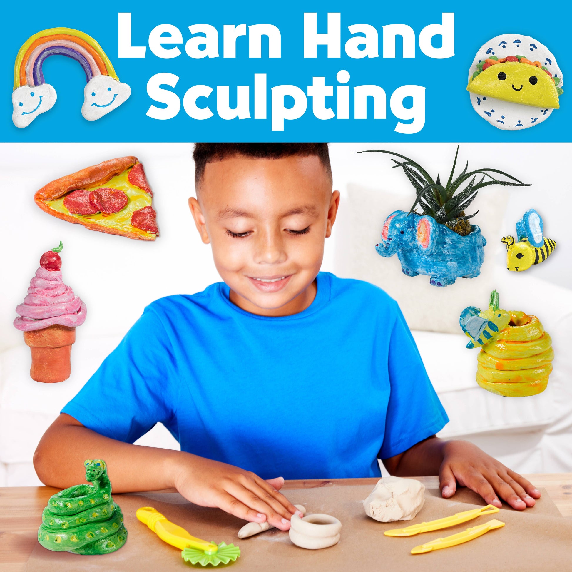 Complete pottery wheel for kids! Comes with 3 lbs of natural clay, a quiet pottery wheel, white base coat paint, opaque acrylic paint, paint brushes, and sculpting tools. Pottery for kids! The wheel comes fully assembled and has an on/off switch for easy control for children ages 8 and up!