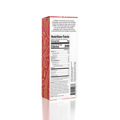 Delight your customers with the Dubai Chocolate Bar Hazelnut Cream by Oasis Treasures, a 75g indulgence blending premium milk chocolate with velvety hazelnut cream. Crafted from the finest UAE-sourced ingredients, this bar offers a decadent flavor journey inspired by the Middle East's exotic charm.