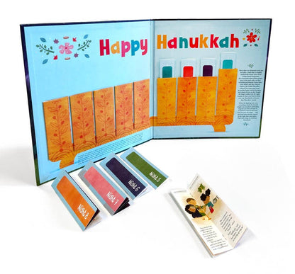 Happy Hanukkah! Count down each night with this gorgeous and fun holiday storybook. Each night, open a candle-shaped book and follow a young Jewish girl and her family as they decorate their home, say blessings, enjoy traditional foods and games, and gather to hear about the brave Maccabees and their victory that brought light to all Jews. Flip the book over to “light” the candle and place it back in the menorah to commemorate each night of the Festival of Lights!