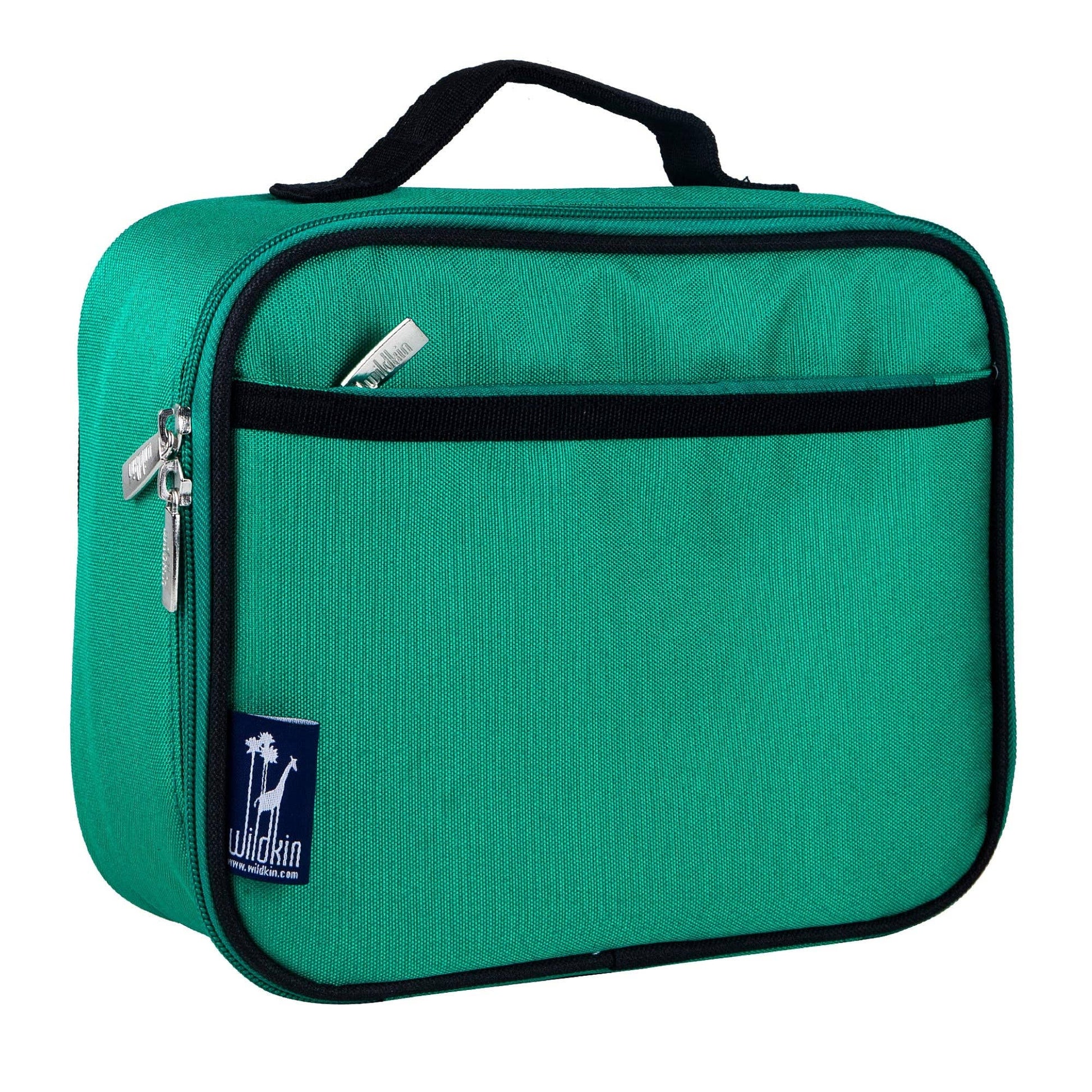 Details: 100% play proof and perfect for elementary age, Wildkin’s Emerald Green classic square-shaped lunch box for boys and girls is designed to help you and the environment by offering a fun and reusable option for lunch and snack time. Apart from the roomy main compartment, this lunch box features a zippered front pocket that is perfect for hiding a surprise treat or securing sweet notes. The lunch box also features an interior mesh pocket for storing napkins, utensils, or an ice pack. Sized just right for kids and adults, the Wildkin Insulated Lunch Box is perfect for the on-the-go parent or child. L 7" x W 9.75" x D 3.25".