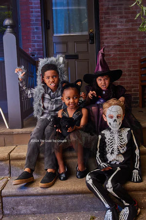 Made with high-quality materials, this set is not only comfortable to wear but also durable enough to withstand all-night trick-or-treating. The skeleton design is made using special glow-in-the-dark ink that is charged by light, giving you an otherworldly look in low-light environments. It's long sleeves & pants are great for bundling up and withstanding a Canadian Halloween!