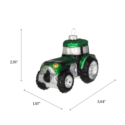 Green Tractor, Hand Painted Glass Christmas Ornament 2025