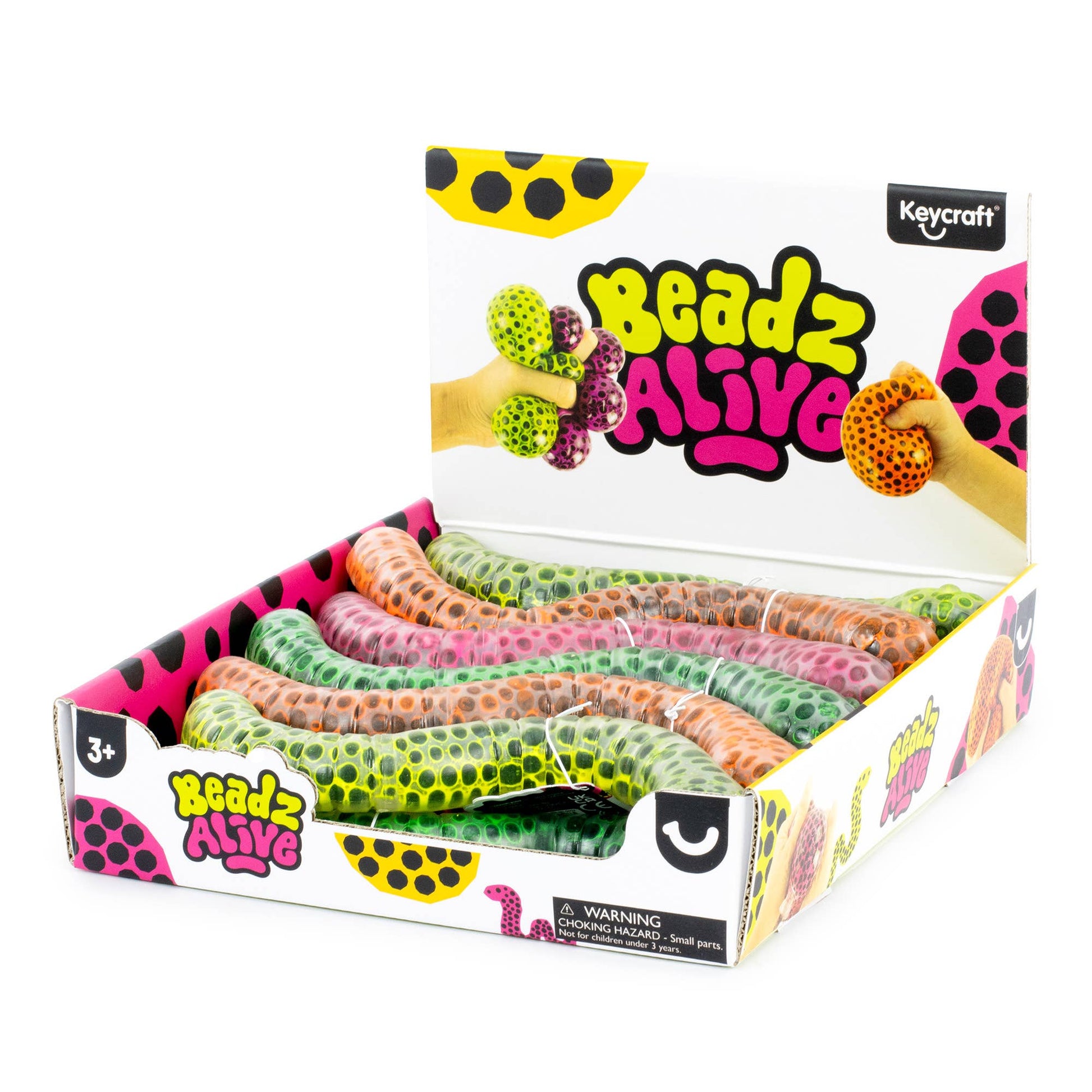 Slither into the captivating world of Beadz Alive with our trend-setting Beadz Alive Snake – a sensory play sensation like no other! Enjoy the tactile delight as you squeeze, squish, and watch the mesmerizing black beads gracefully move through your fingers, creating an almost-alive experience! Explore a range of vibrant colors, and let our branding and displays invite you into a sensory play adventure with Beadz Alive – where playfulness meets innovation!