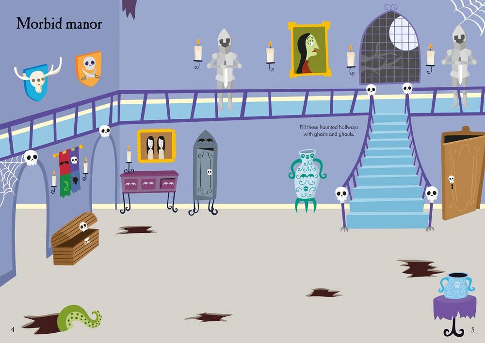 Young children will love getting into the Halloween spirit with this spine-tingling sticker book. Scenes to decorate include haunted houses, a witch's workshop, a pumpkin patch, and a monster party. With over 300 reusable stickers of zombies, ghosts, spider,s and more, plus a fold-out back cover to store stickers when not in use.