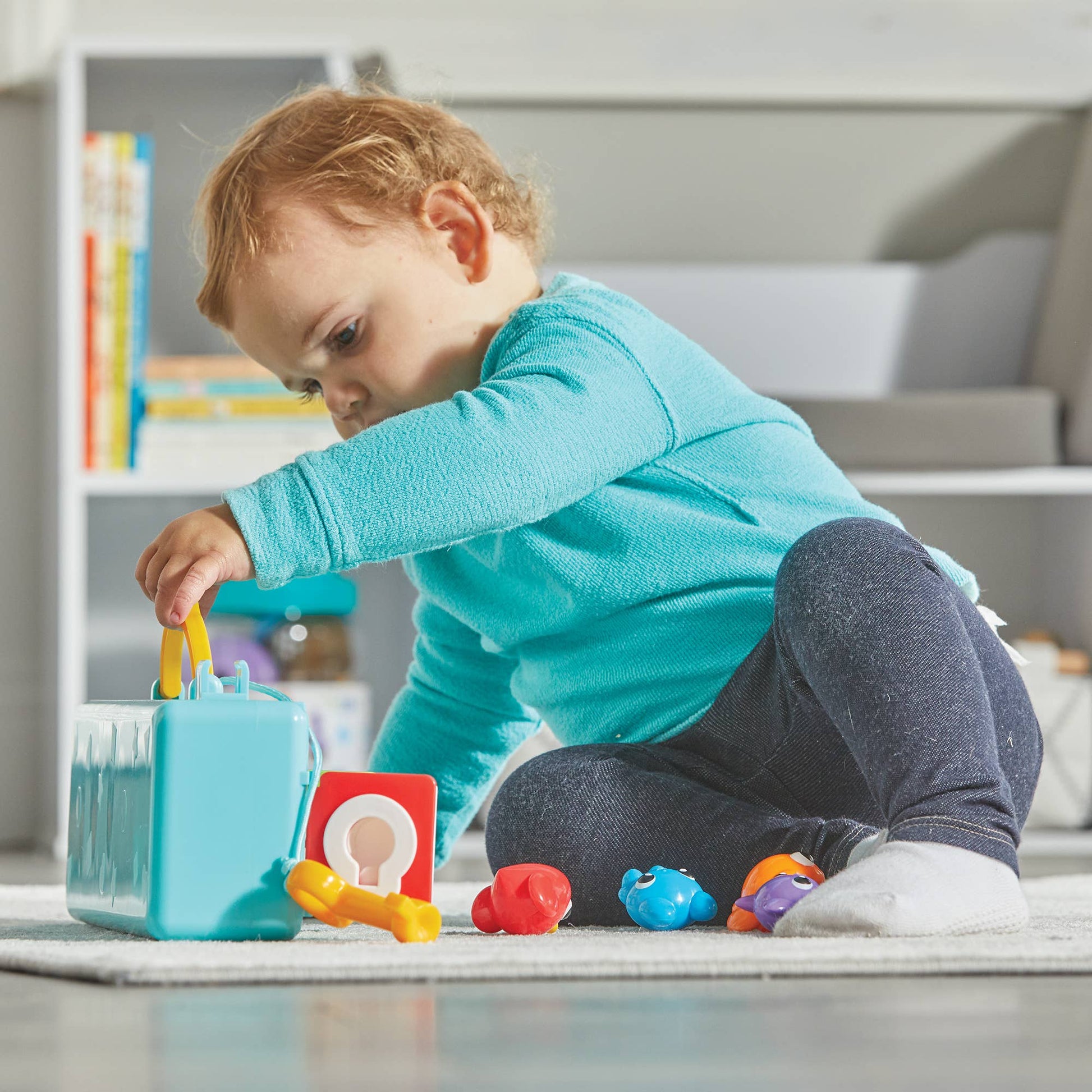 Unlock foundational skills with these hidden surprise friends! Toddlers discover the key to independence with this fun lock-and-key toy that helps them strengthen essential cognitive and motor skills. Build pincer grasp and coordination with the toddler toy’s locks and key, and learn counting, colors, shapes, and memory skills with the 5 friendly animal figures that are ready for preschool learning activities and games of hide and seek, peekaboo, and more!