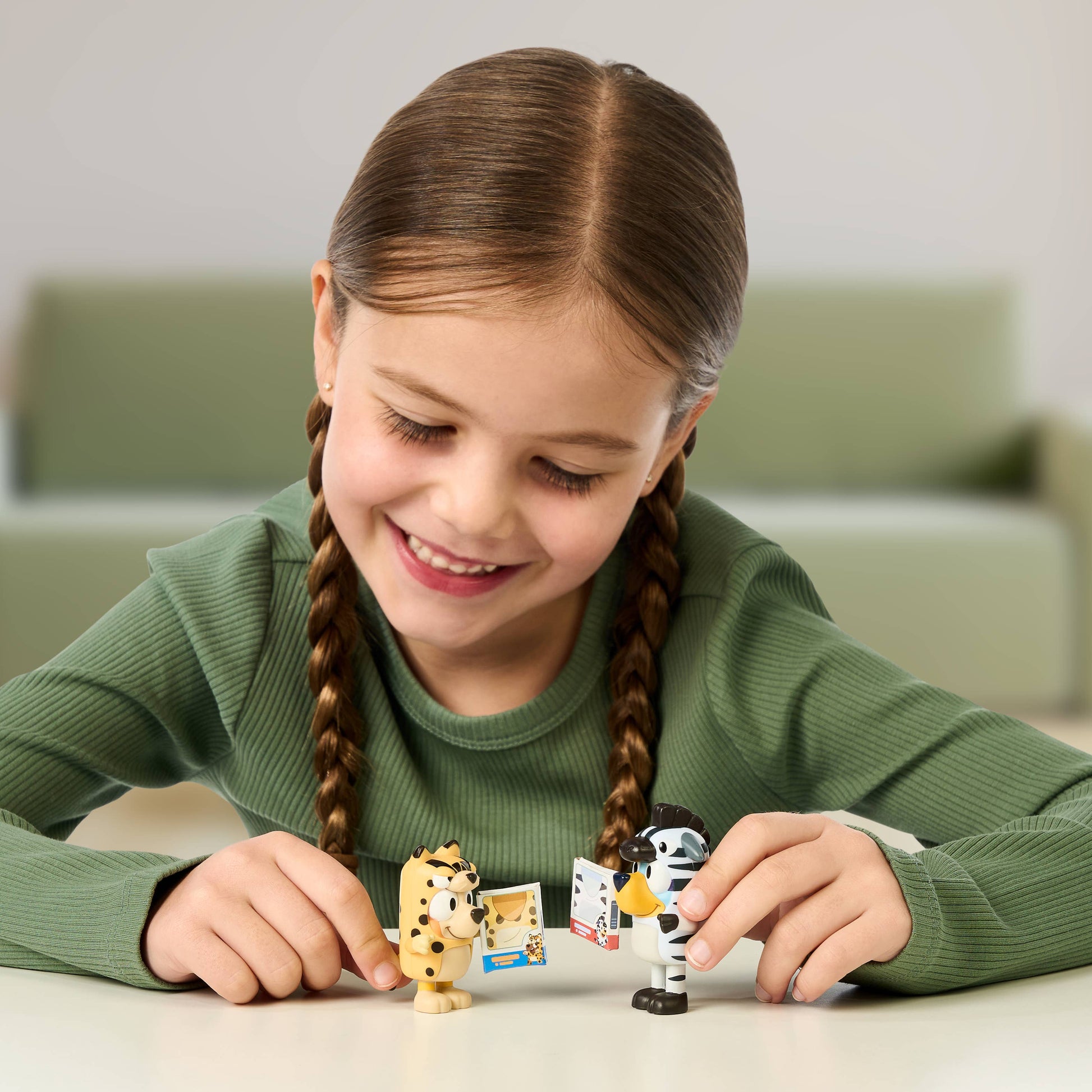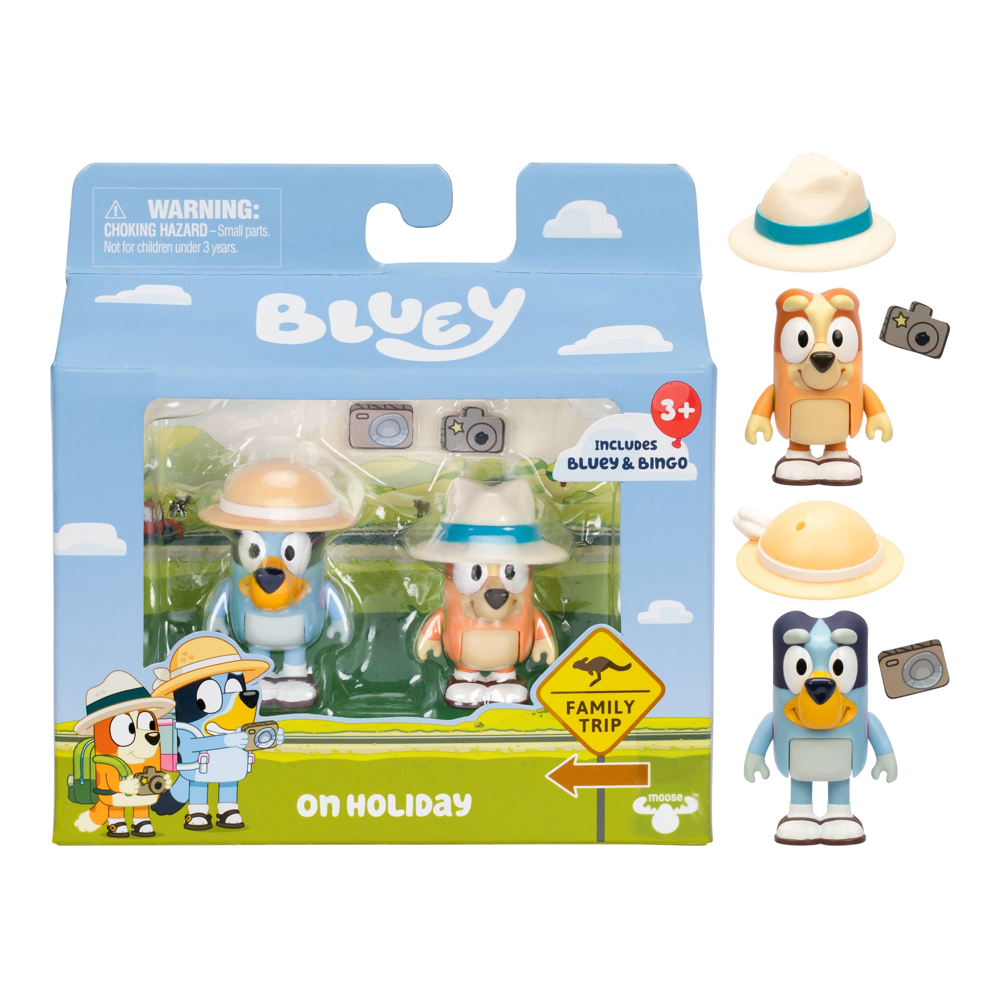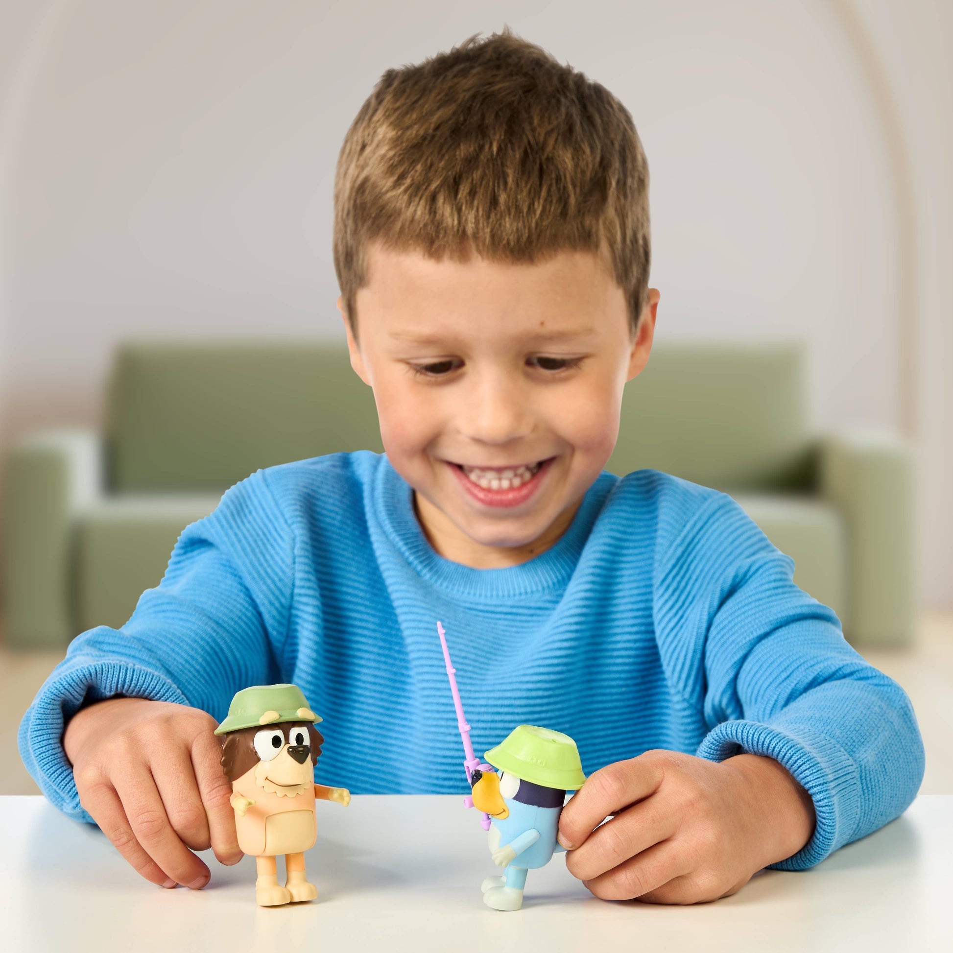 Bring the fun and imaginative play of Bluey and her family home with these new adorable Bluey Figure 2 Packs! Each Figure 2 Pack is themed around a Bluey episode and comes with accessories to add to the fun. There are three new packs to collect: On Holiday, Fishing with Grandad and Animal Costumes. Figures in these packs have poseable moving arms and bodies.