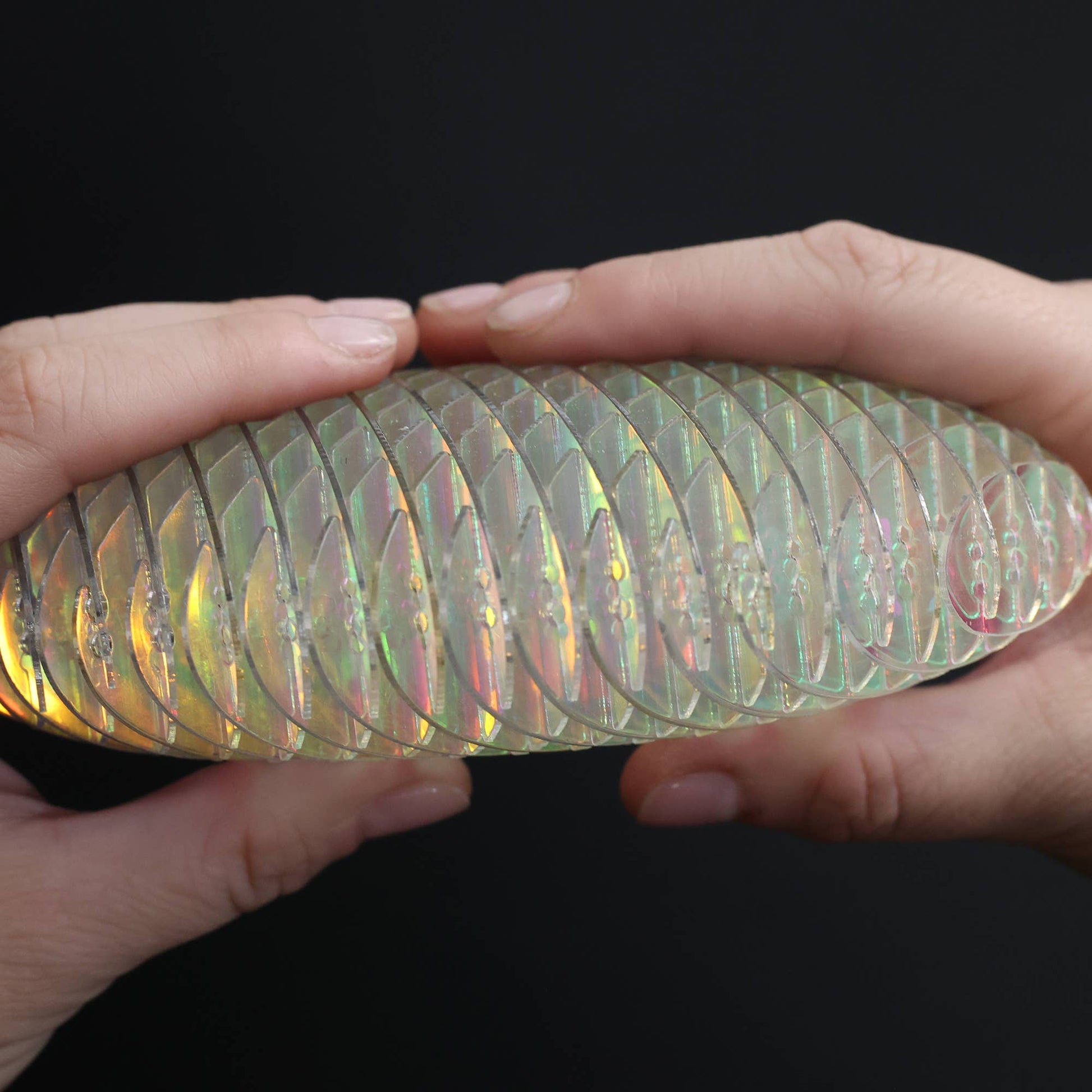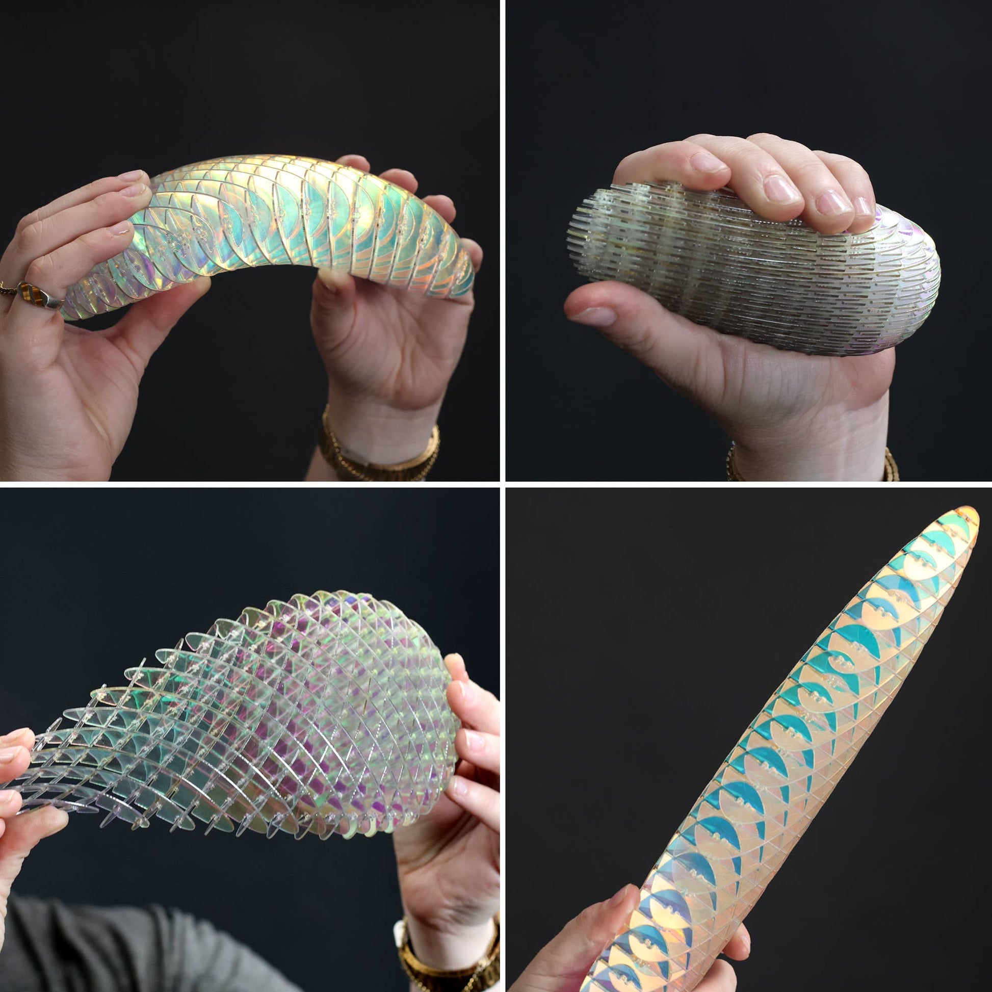 This is the bigger version of our advanced fidget toy. It stretches, it collapses, it accordions. It bends, it flexes, it extends.