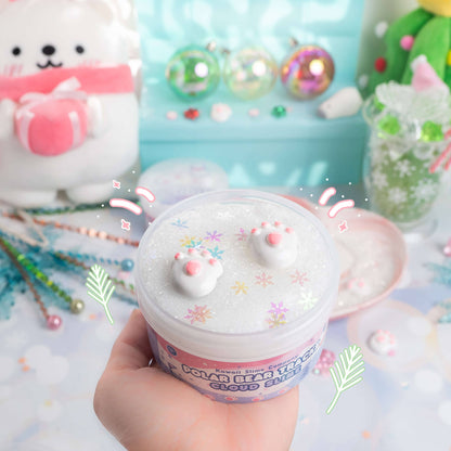 There is nothing more satisfying than a fluffy white Cloud Slime that sparkles in the sun and drizzles like a dream. Each Polar Bear Tracks smells like a crisp snow day, with notes of frosty musk, icy spring water and juniper berry and comes topped with 3 adorable paw "tracks" in the cutest soft pink color. Polar Bear Tracks is one of our best selling Holiday Slimes, a perfect gift for any Slime crazed family member.