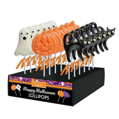 🎃 Spooky Halloween Assorted Hard Candy Lollipops 👻 Black cats, grinning pumpkins, and ghosts—oh my! These Spooky Halloween Lollipops are here to haunt your candy aisle in the best way possible. We're talking hand-poured hard candy shaped like all your favorite Halloween icons: creepy cats, cheerful jack-o’-lanterns, and spooktacular ghosts. 🖤 Black Cats – Bold black cherry flavor with a sinister side-eye. 🎃 Pumpkins – Orange you glad it tastes like fall fun? 👻 Ghosts – Boo-tifully sweet with a cotton candy surprise. Each lollipop is individually wrapped and ready to fright... we mean, delight your customers. Perfect for candy buffets, trick-or-treat stations, or summoning spirits (probably not FDA-approved for that). Stock up before these ghoulies vanish into the night!