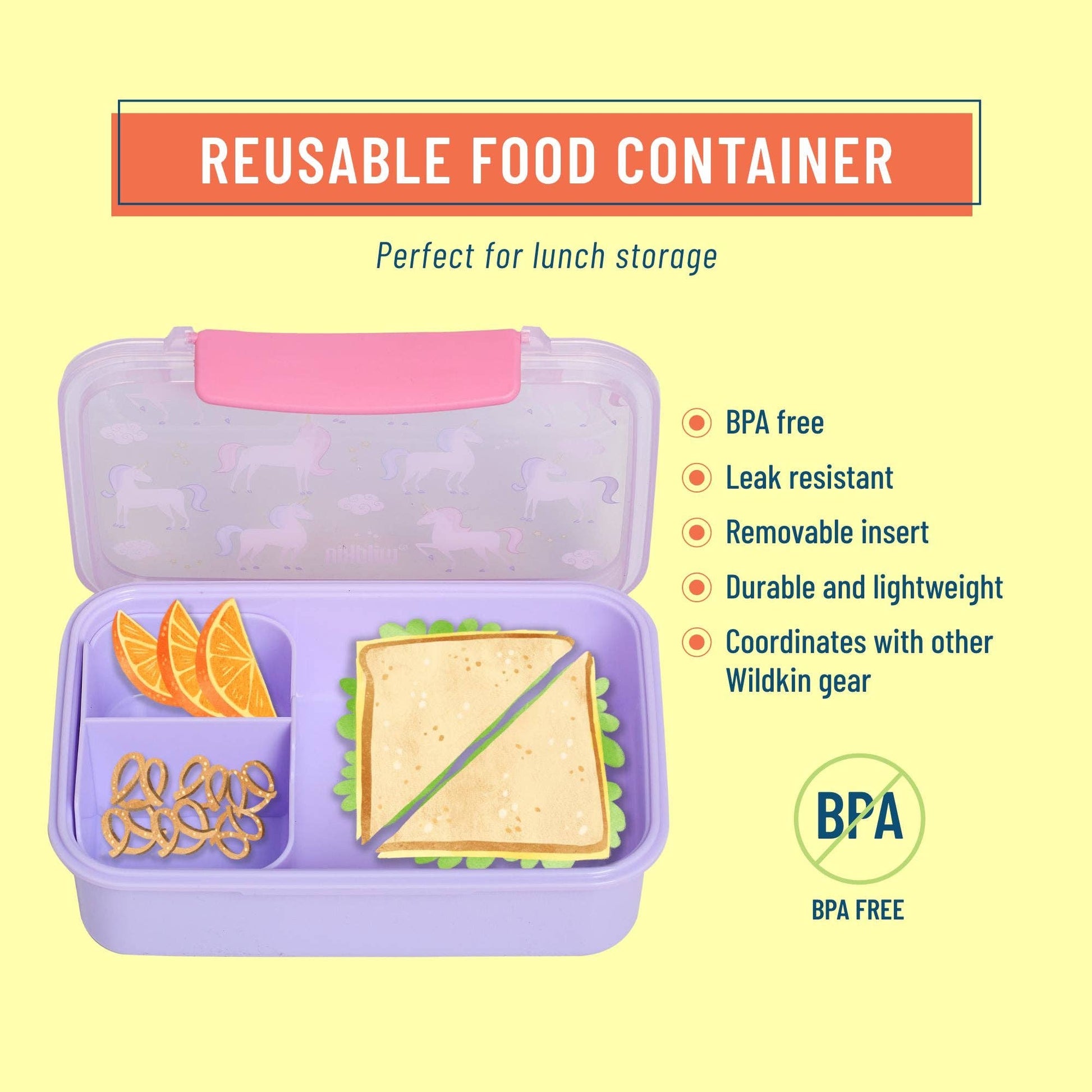 Wildkin's Reusable Bento Box Container is designed with both kids and parents in mind. With a removable insert, parents will be inspired to pack well-balanced meals, and kids will be delighted with all the choices! BPA-free plastic, leak resistant silicone seals, and easy open/close clasps make Wildkin's Reusable Food Container super durable and kid friendly.
