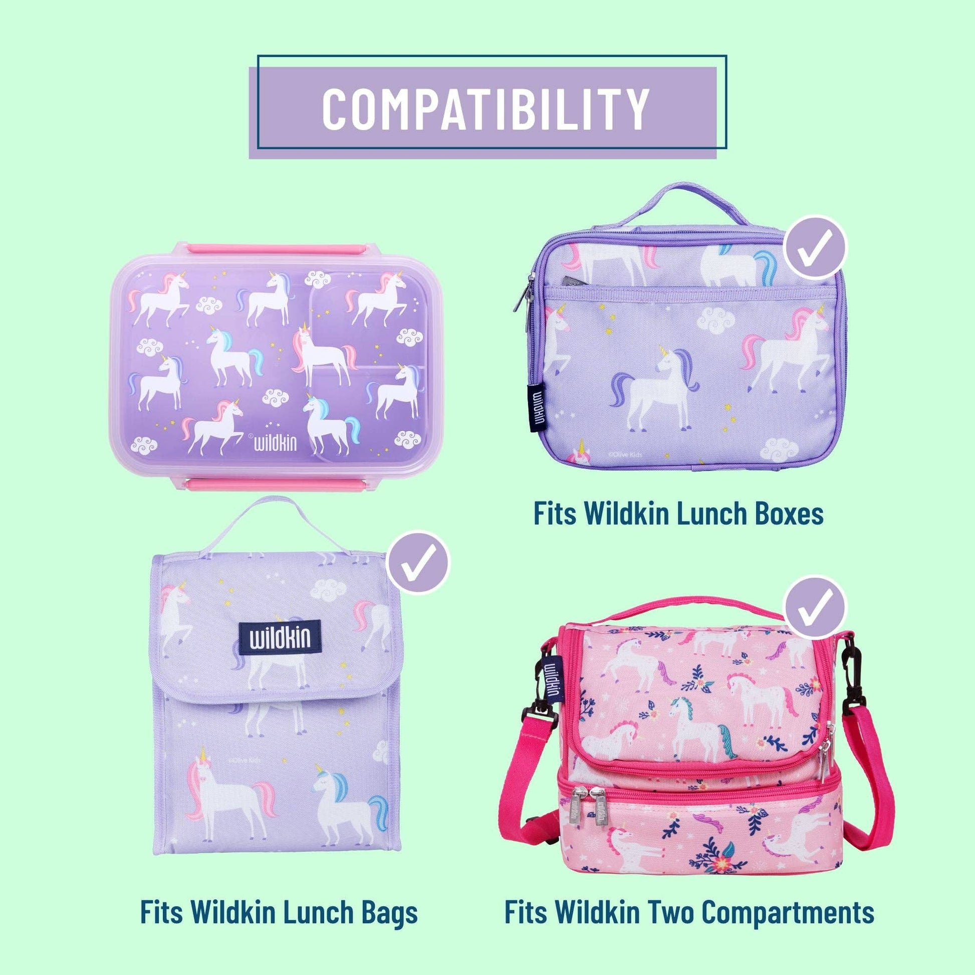 Compatible with Wildkin's Lunch Box, Lunch Bag, Eco Lunch Bag, Clip-In and Two Compartment (top or bottom compartment) Lunch Bags