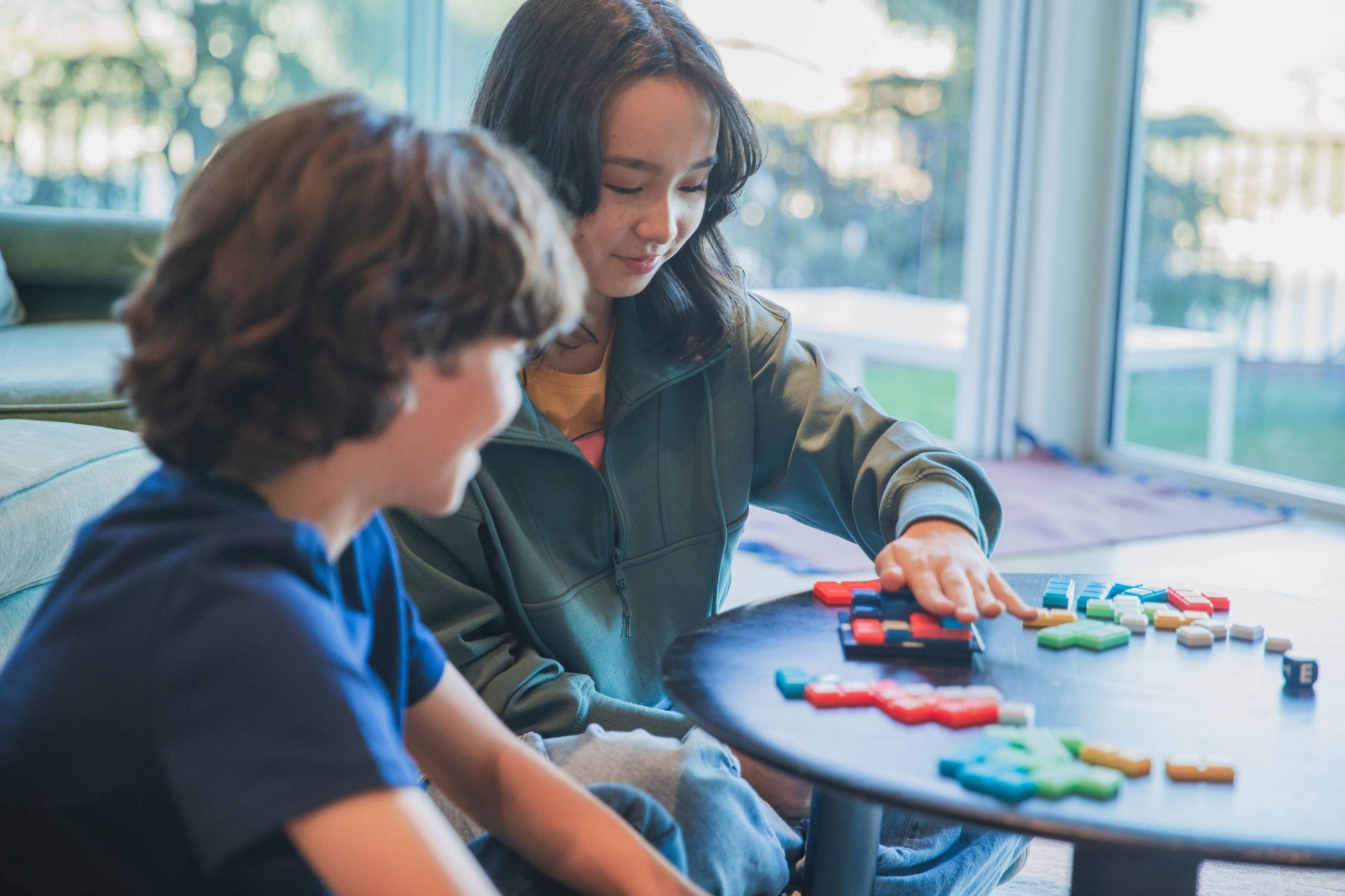 The strategic stacking puzzle game. Roll the die, then stack your puzzle pieces without bridging gaps or hanging off the board. The first player to use all their pieces wins! Includes 40 Upzzle pieces, game board, die, and drawstring storage bag.