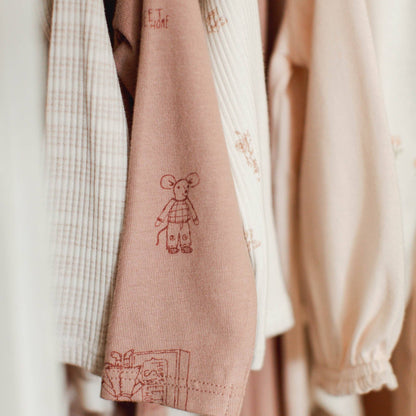 * Snap opening along the side of mouse bodysuit, at left shoulder on floral bodysuit, and at diaper line for easy dressing