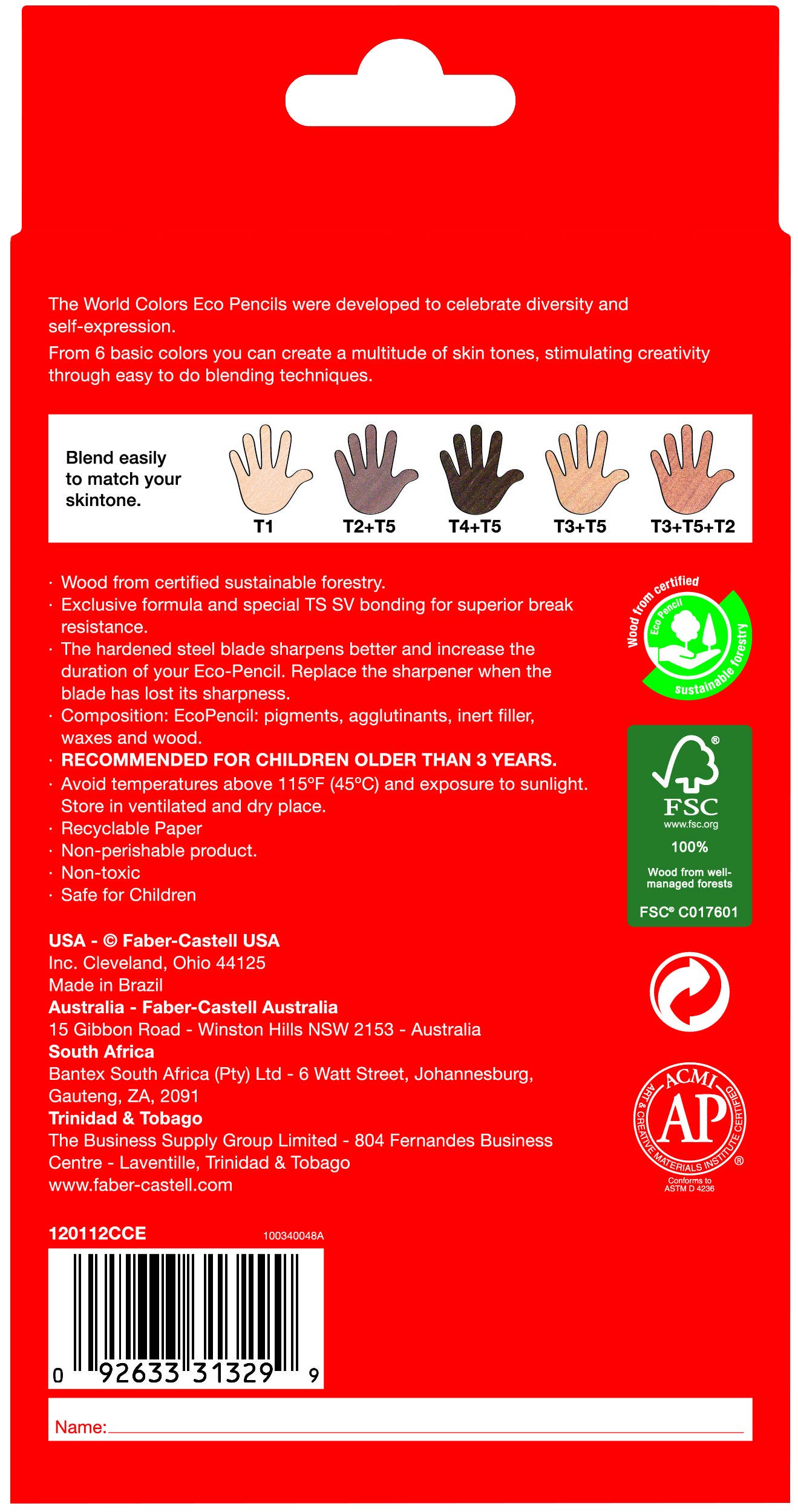 World Colors - 15 Colored Pencils with Skin Tones EcoPencils