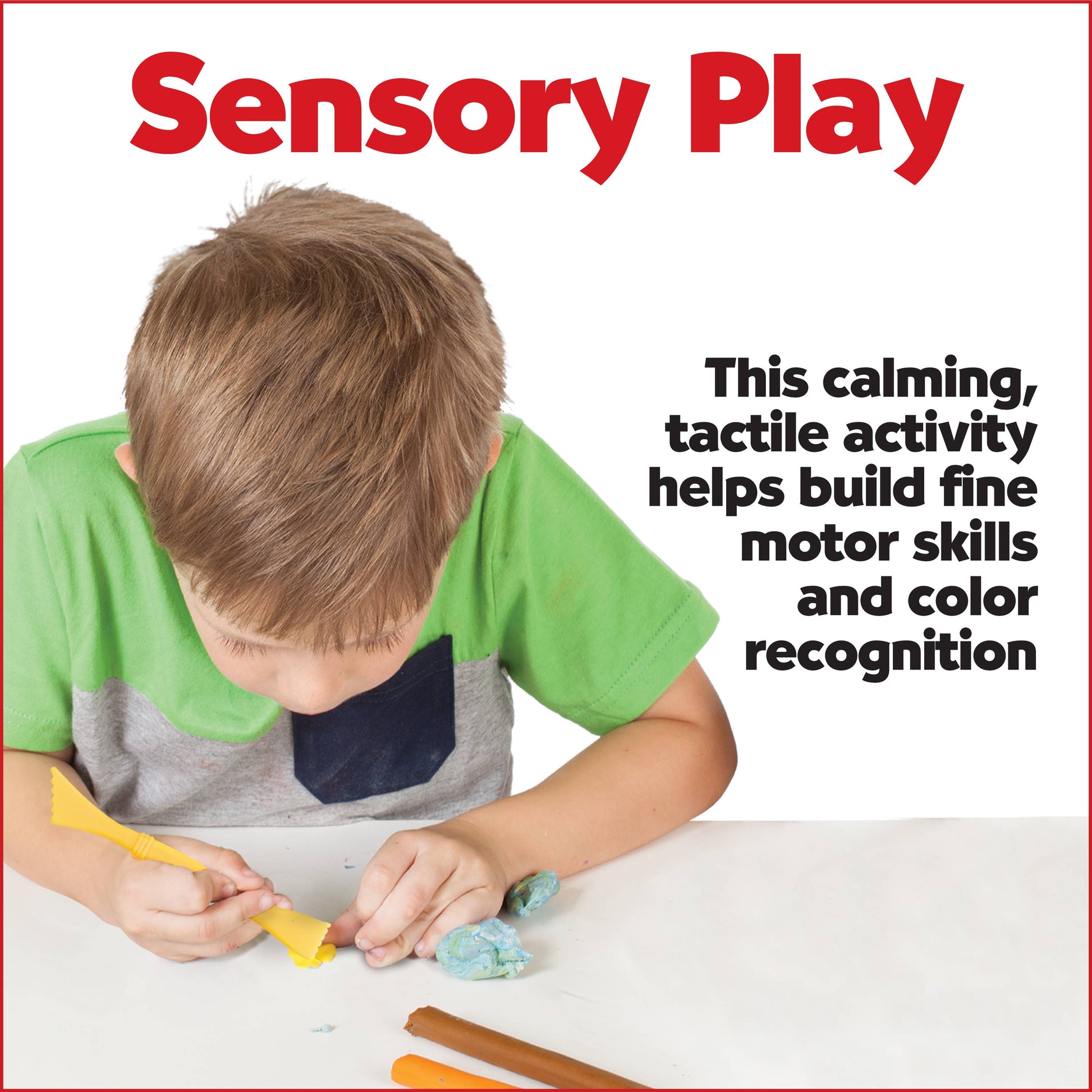 Soft clay is easy to squish, build, roll, and mix for hours of clay play fun. 3 special edged clay tools for mixing and adding details, are lightweight and fun to work with. Kids will enjoy this sensory activity for hours!